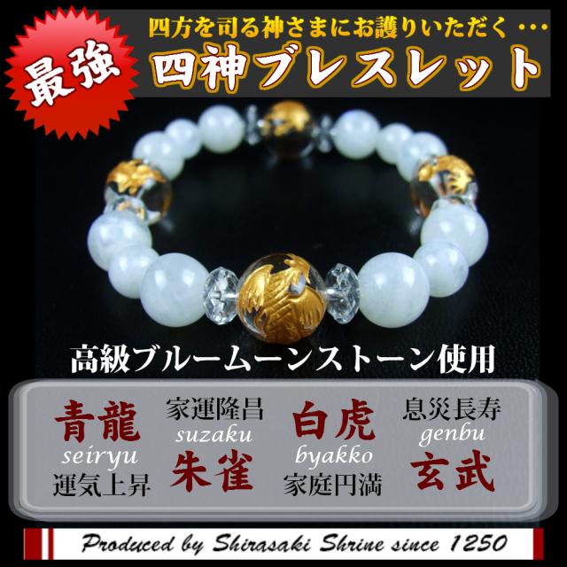 『』運気上昇 風水四神水晶金手彫りムーンストーンレディースパワーストーンブレスレット 神社で祈願済み