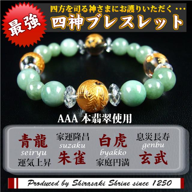 運気上昇!開運風水四神水晶手金彫りレディースパワーストーンブレスレット【ジェイド(翡翠)】神社で祈願済み