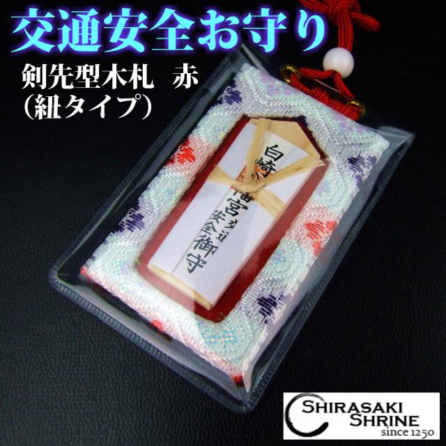 交通安全剣先型木札お守り(赤)★無事故・無災害で安全運転 岩国鎮座の神社でご祈願済み