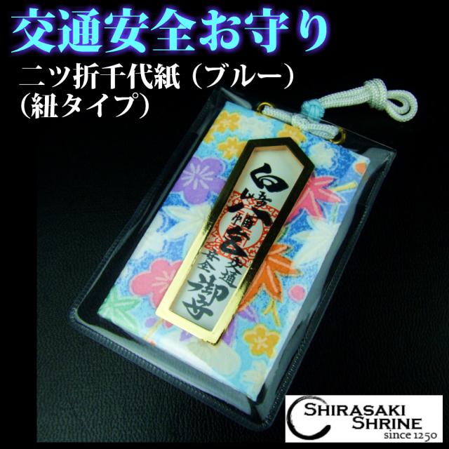 交通安全二ツ折千代紙お守り(ブルー)★無事故・無災害で安全運転 岩国鎮座の神社でご祈願