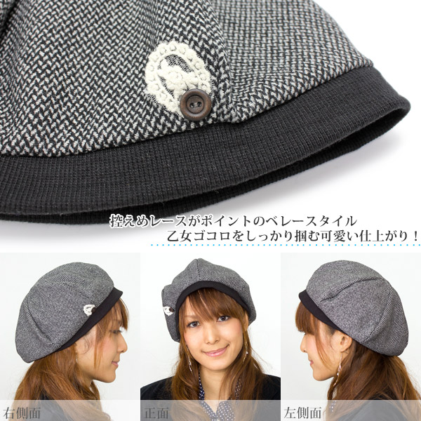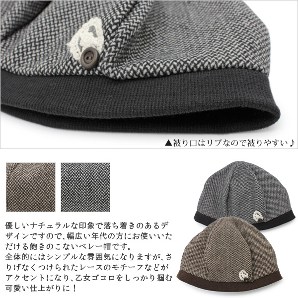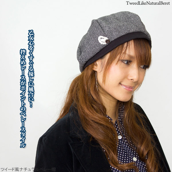 帽子 レディース [メール便可] ベレー帽子 秋冬 レース 女性用 / ツイード風ナチュラル ベレー帽