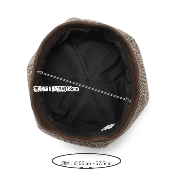 | サイズ | サイズ表記57.5cm(頭囲:約55〜57.5cm、被り口の直径:約18cm) |