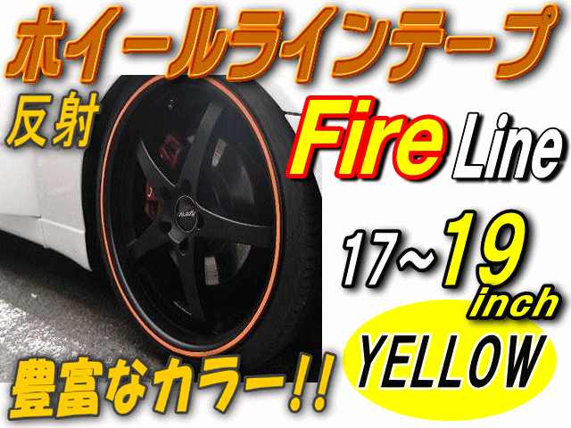 リム (17〜19) 黄炎 【商品一覧】 ファイアーパターン イエロー 反射 幅1cm リムステッカー ホイールラインテープ リフレクト リフレクター 17インチ 18インチ 19インチ対応 ホイールステッカー ファイヤー バイク 車 貼り方