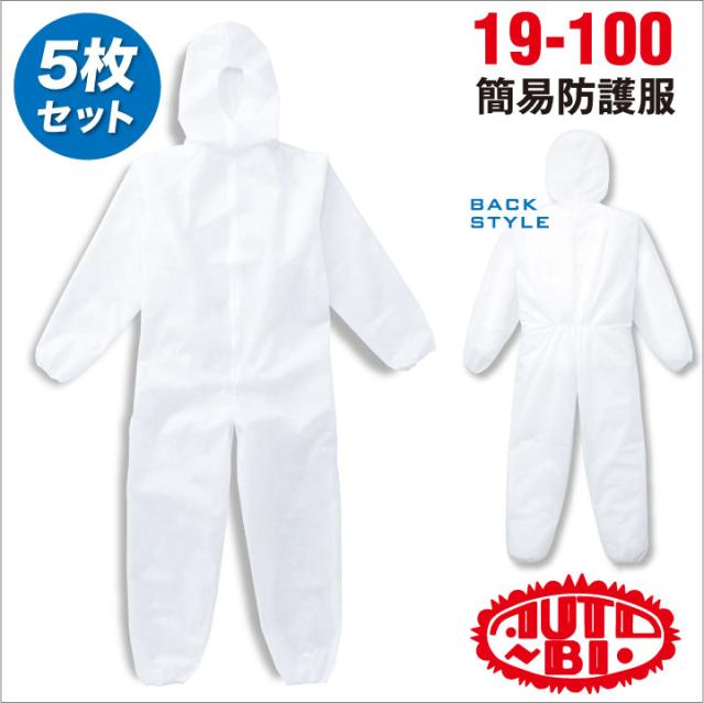 簡易防護服つなぎ 不織布 ツナギ服 続服 ツヅキ 作業服 作業着 5枚セット オートバイ 春夏 秋冬 長袖 ab-100