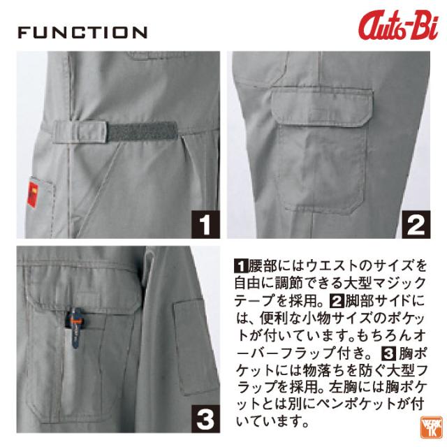 AUTO-BI 長袖つなぎ服 春夏 秋冬 ツナギ メンズ レディース 帯電防止 日本製生地 仕事服 おしゃれ 山田辰 即日出荷 ab-2350