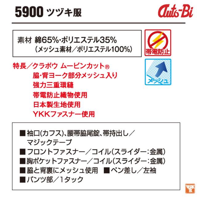 AUTO-BI 長袖つなぎ服 春夏 秋冬 ツナギ メンズ レディース 帯電防止 日本製生地 動きやすい メッシュ 仕事服 おしゃれ 山田辰 即日出荷 ab-5900