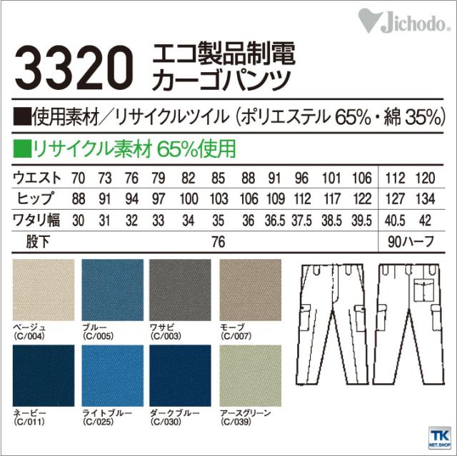 カーゴパンツ 作業服 作業着 自重堂 作業ズボン リサイクルツイルシリーズ ベトナムズボン 秋冬 jd-3320