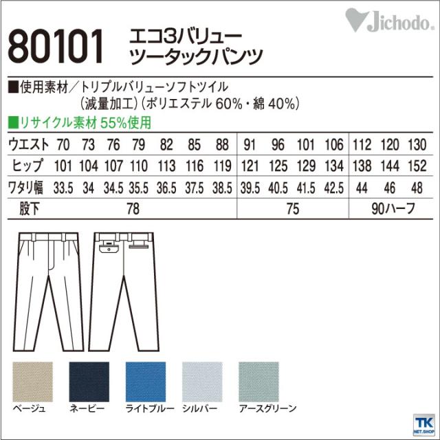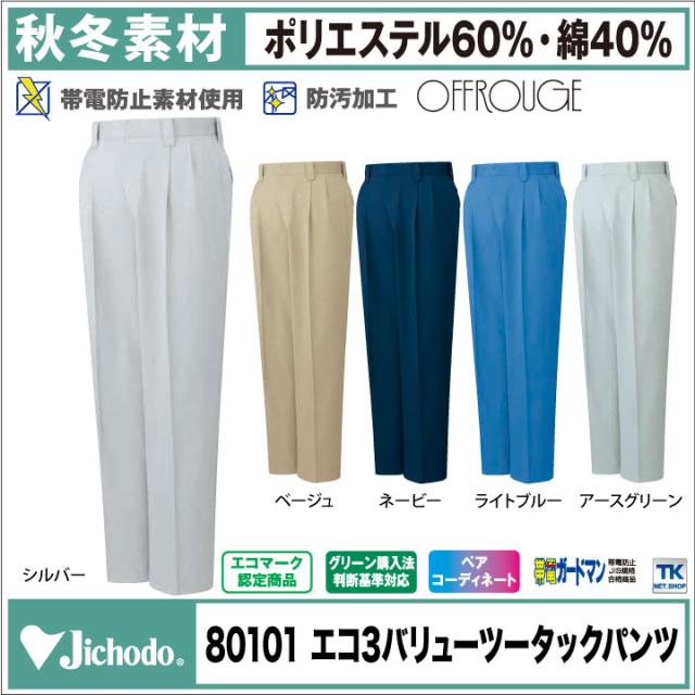 スラックス 作業服 作業着 自重堂 作業ズボン トリプルバリューソフトツイルシリーズ ツータックパンツ エコ素材 防汚加工 製品静電男女ペア 秋冬 jd-80101