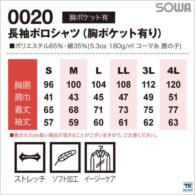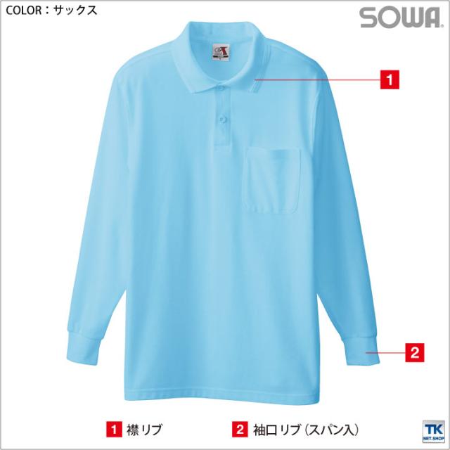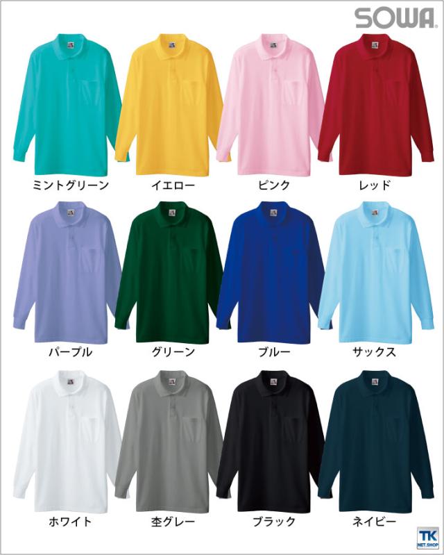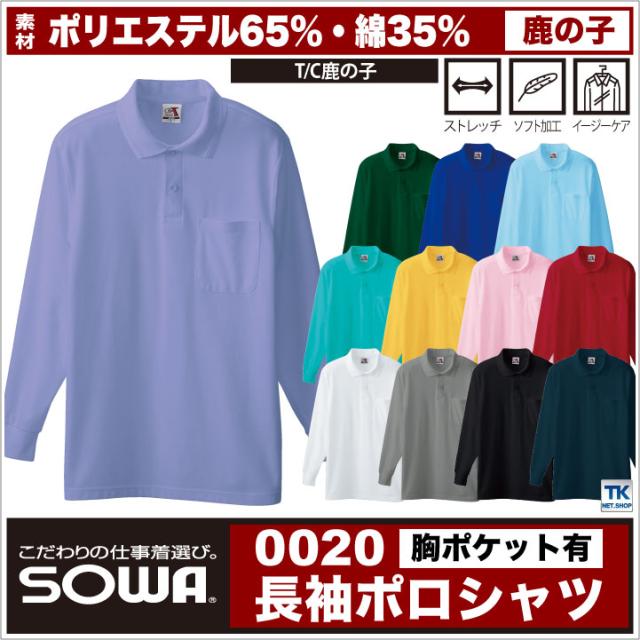 長袖ポロシャツ 作業服 作業着 作業シャツT C鹿の子 定番 胸ポケット付き 作業シャツ 春夏 秋冬 SOWA sw-0020