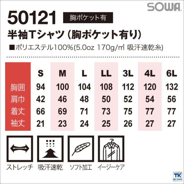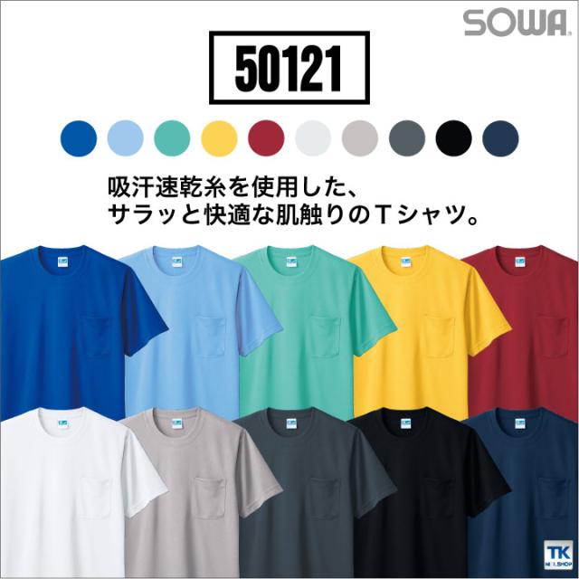 半袖Tシャツ 作業服 作業着 吸汗速乾 サラッと快適な肌触り 定番半袖Tシャツ 胸ポケット付き 作業シャツ SOWA 半袖Tシャツ 春夏 sw-50121