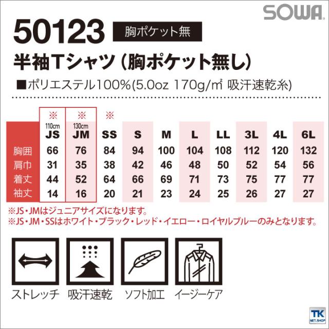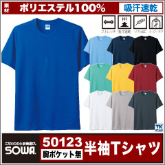 半袖Tシャツ 作業服 作業着 吸汗速乾 サラッと快適な肌触り 定番半袖Tシャツ 胸ポケットなし 作業シャツ SOWA 半袖Tシャツ 春夏 sw-50123