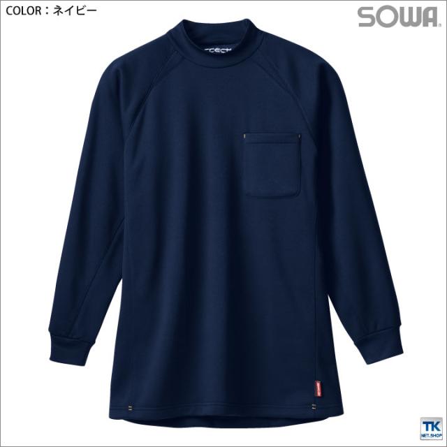 長袖ハイネックシャツ 作業服 作業着 作業シャツ あったか 裏起毛 胸ポケット付 長袖シャツ 秋冬 SOWA sw-50428
