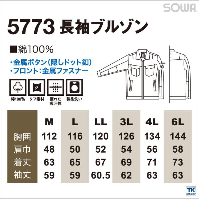 長袖ブルゾン 綿100% 秋冬 作業服 作業着 作業ジャンパー 安心価格シリーズ 長袖 ジャケット SOWA sw-5773