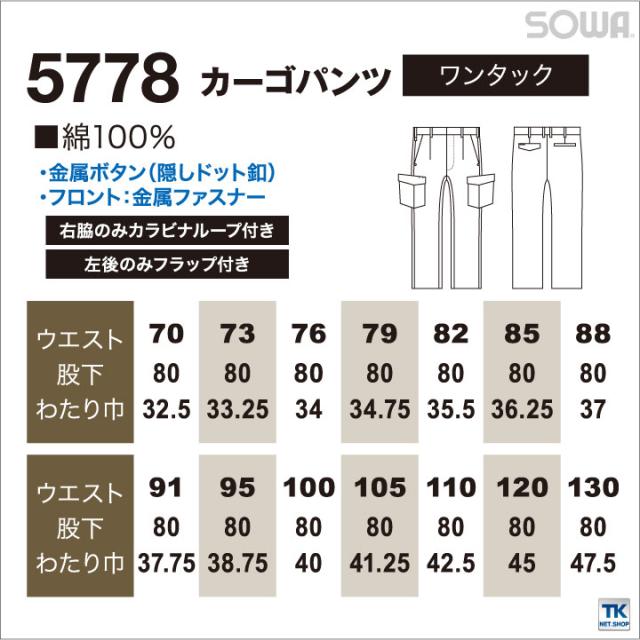 カーゴパンツ 作業服 作業着 作業ズボン 秋冬 綿100%・安心価格シリーズワンタック ベトナムズボン SOWA sw-5778