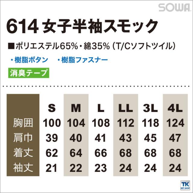 半袖ブルゾン 作業服 作業着 作業ジャンパー 春夏 レディース 女性用 半袖スモック作業服 作業ジャンパー半袖ブルゾン 半袖ジャンパー 半袖スモック SOWA sw-614