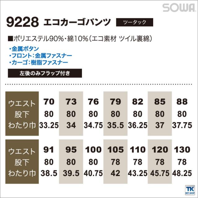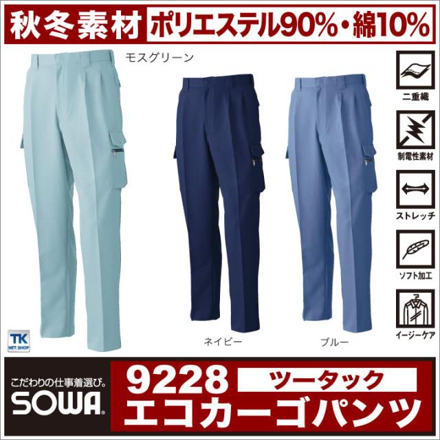 カーゴパンツ 作業服 作業着 作業ズボン 秋冬 吸汗性、速乾性東レ ストレッチECO 裏綿リサイクルウェア SOWA sw-9228
