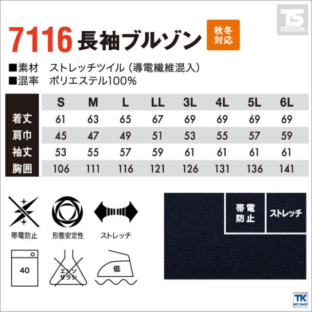 TS DESIGN 長袖ブルゾン 作業服 作業着 作業ジャンパー 秋冬 SCUTUM ストレッチツイル 長袖 ジャケット tw-7116