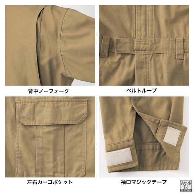 ヤマタカ 長袖カバーオール 春夏 秋冬 上着 メンズ レディース 綿100% コットン ツイル 天然素材 厚手 丈夫 耐久性 ノーフォーク カーゴポケット ベルトループ 脇ゴム フラップ付き 自動車整備 メカニック DIY 農作業 塗装 工場 現場服 仕事服 おしゃれ トップス yt-2200