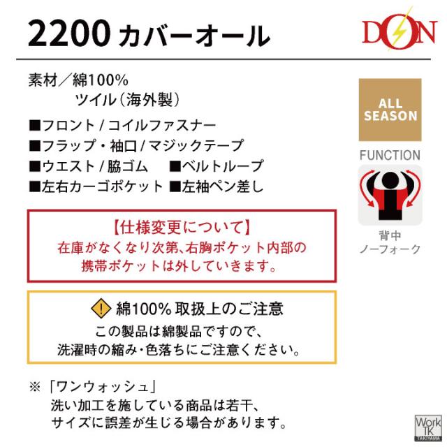 2200 ヤマタカ 長袖カバーオール 春夏 秋冬 工事現場 建設業 農作業 ガーデニング アウトドア おすすめ 制服 人気 豊富なカラー展開