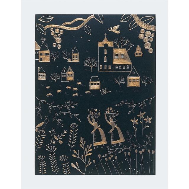 ニードルなどで引っかいた線による絵を仕上げていくものです。