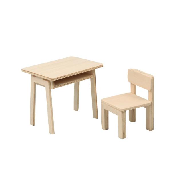 アートスタイリスト芯と組み合わせれば、臨場感あふれる作品ができます。しなベニヤを机と椅子の形にトムソン抜加工してあります。組立が簡単で、教室内のジオラマ作りに最適です。