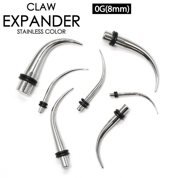 【メール便対応】拡張器 カーブ エキスパンダー クロウ[爪] 0G(8mm) ボディピアスサージカルステンレス316L クロー イヤーロブ ホールアップ 角型形状 エクステンション 0ゲージ(8ミリ) ┃