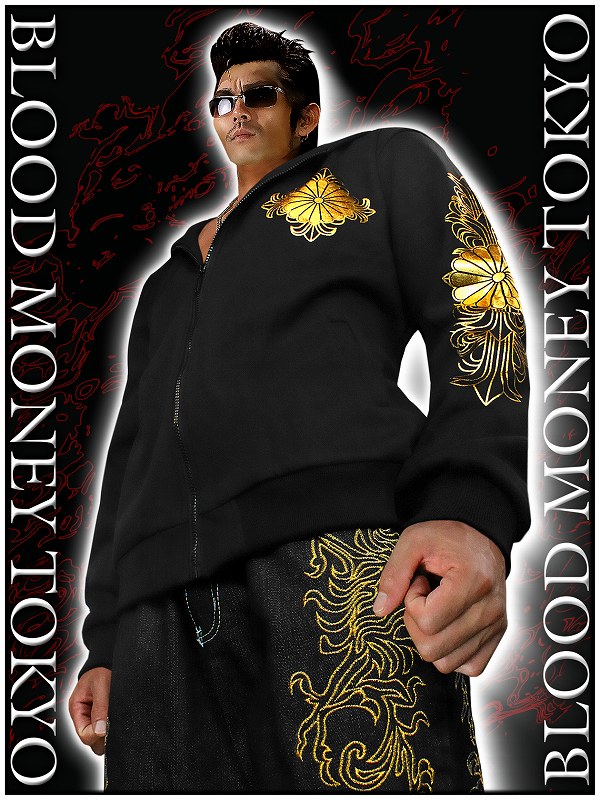 送料無料!12038黒×金 BLOOD MONEY TOKYOパーカー 菊家紋 ヤクザ悪羅悪羅系オラオラ系ヤンキーチンピラ不良チョイ悪服 悪党の店 バースジャパン BIRTHJAPAN