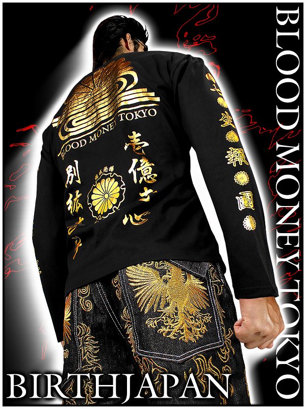 送料無料!12039黒×金 ロンT 菊水家紋 悪羅悪羅系オラオラ系ヤンキーチンピラ不良チョイ悪服 悪党の店 バースジャパン BIRTHJAPAN