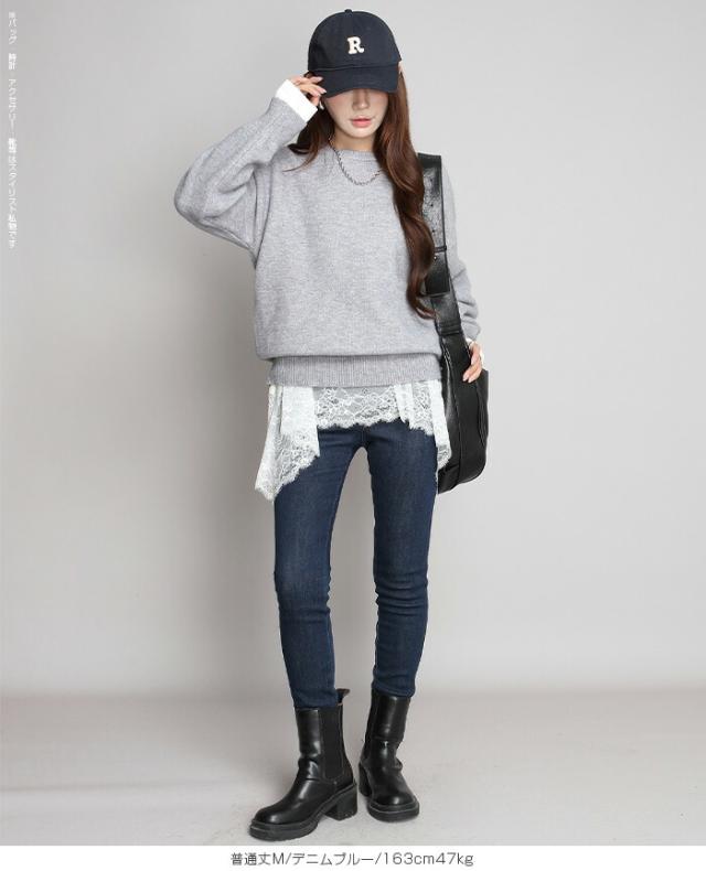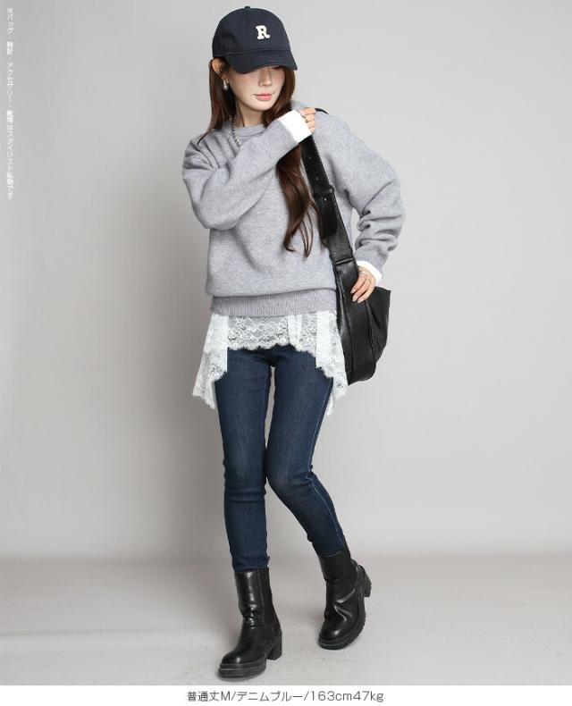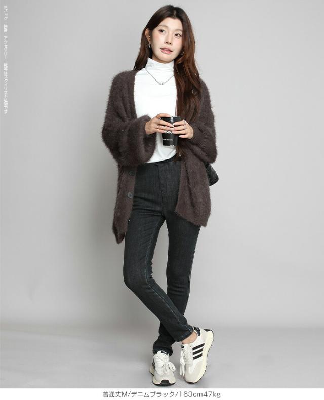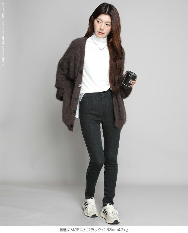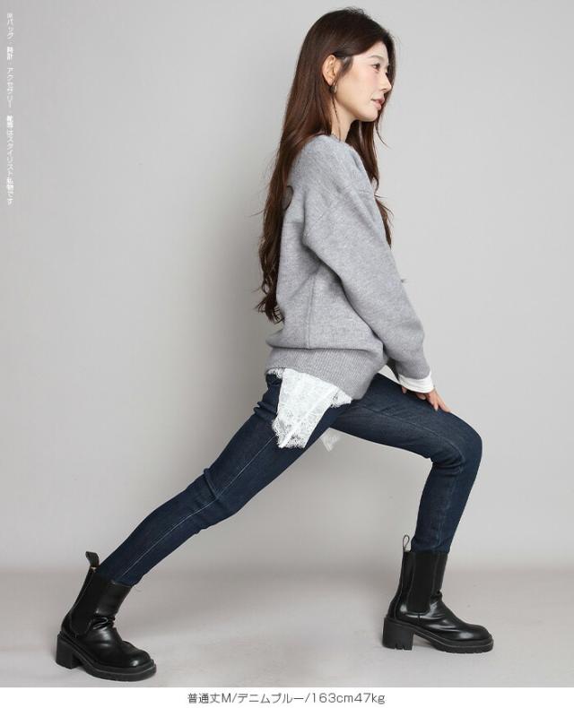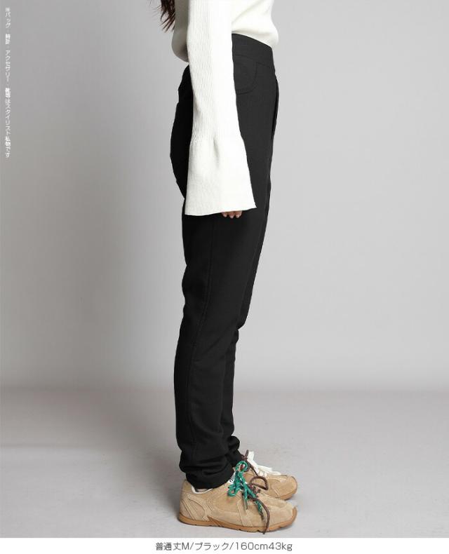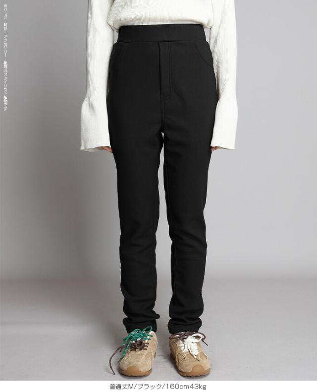 【 元祖裏起毛スキニーストレッチパンツ 】 寒い季節もストレスなく穿ける、裏起毛ストレッチスキニーパンツ。 ふんわり裏起毛が脚全体を優しく包み込み、暖かさと快適さを両立。 しっかり伸びる4WAYストレッチ素材で、動きやすさ抜群。 高い伸縮性でしゃがむ・走る・大股歩きもノンストレス。 ウエストは幅広リブ仕様で締め付けず、長時間の着用も快適。 すっきり細見えするシルエットで、美脚ラインを演出します。 《商品ポイント》 裏全面ふわふわ裏起毛:冬に嬉しいあたたか設計 超ストレッチ素材:ヨガポーズもできるほど伸びる 高伸縮ウエスト:お腹に食い込まないリブ仕様 美脚スキニーライン:細見え&脚長効果 デニム見え or 無地の選べるデザイン デイリー使いに最適:通勤・学校・買い物・アウトドアまで 《デザイン・シルエット》 脚に吸い付くようなスキニーシルエットで、ラインをすっきり美しく見せる バックポケット付きで小尻見せ 前後で切り替えの位置を調整しスタイルアップ効果 ウエストは締め付け感の少ない幅広ゴムで、腰まわりをすっきり見せながら快適 裾はもたつきにくい細幅設計でブーツインも◎ 《コーディネート提案》 ゆるニット × スキニーで定番の細見えバランス オーバーサイズパーカーと合わせてカジュアルに ロングコート+ブーツで冬の上品スタイル ショート丈トップスで脚長効果を最大化 スニーカー合わせでデイリーに、ブーツ合わせで大人っぽく 《サイズ・カラーバリエーション》 サイズ:普通丈/M 普通丈/L 長め丈/M 長め丈/L カラー:ブラック / デニムブルー / デニムブラック 《素材・機能性》 ・素材:表地:コットン80%、ポリエステル17%、ポリウレタン3% 裏地:ポリエステル95%、ポリウレタン5% ・透け感:なし ・厚み:普通 |