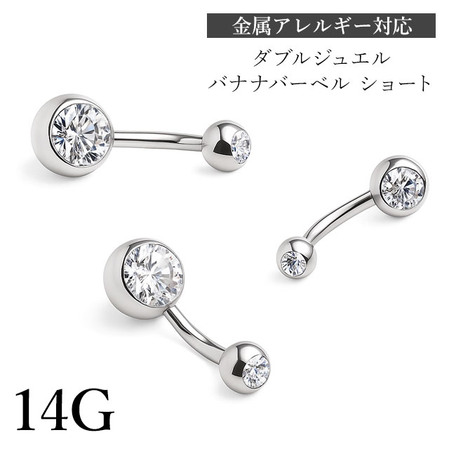 HSP クリアダブルジュエル ショート(軸長6mm/8mm)バナナバーベル 14G【ヘソピアス/へそピアス/シンプル系/耳にもおすすめ】