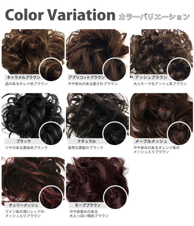 カラー:全8色(キャラメルブラウン/アプリコットブラウン/アッシュブラウン/ブラック/ナチュラル/メープルメッシュブラウン/チェリーメッシュブラウン/モーブブラウン)