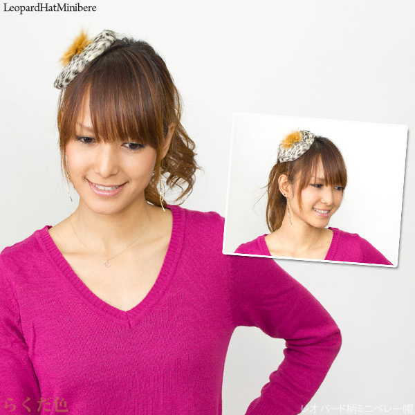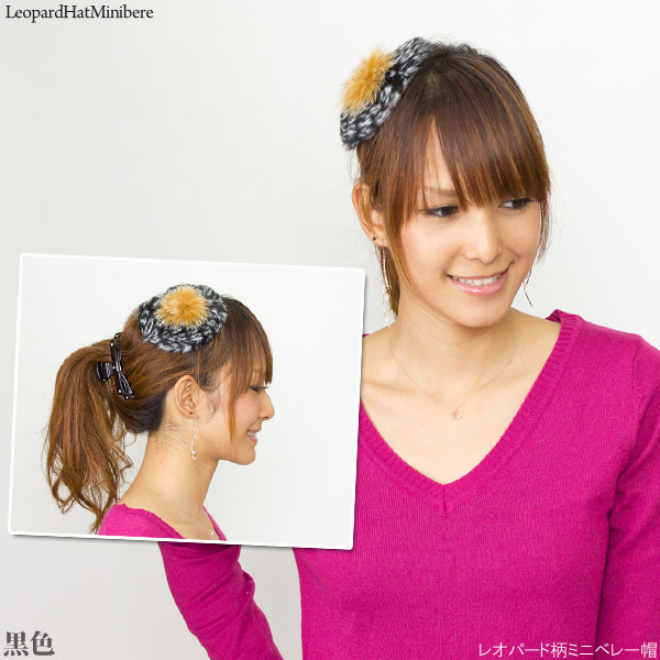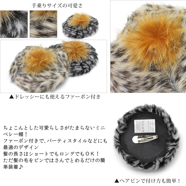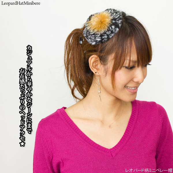 ミニ帽子 ヘアピン [メール便可] ヘッドアクセ パーティ 秋冬 おしゃれ 女性 / レオパード柄ミニベレー帽