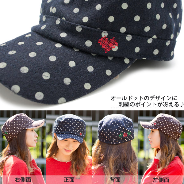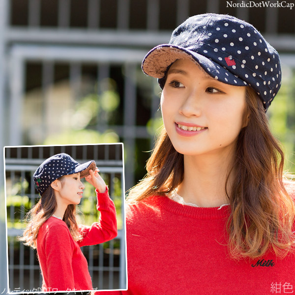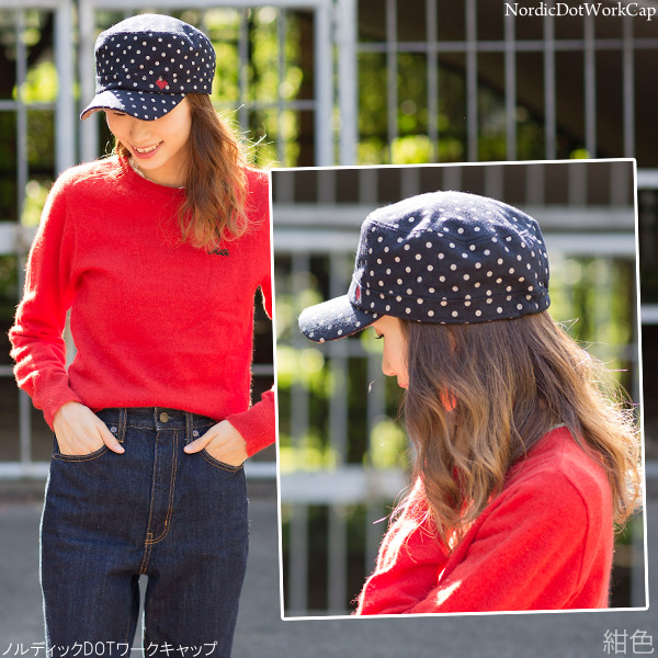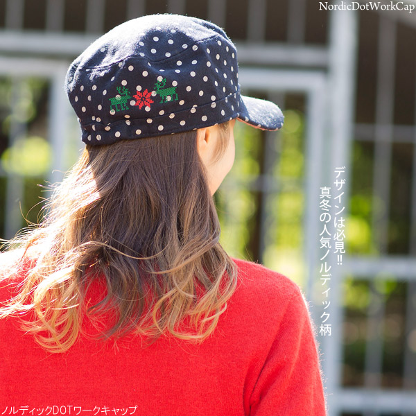 キャップ レディース [メール便可] 帽子 秋冬 水玉 ドット / ノルディックDOTワークキャップ