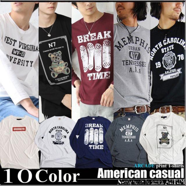 ロンT ロング丈 メンズ 長袖Tシャツ ロングTシャツ 秋新作 アメカジ カレッジ ロゴ プリント メンズTシャツ 人気 トップス メンズファッション プリント tシャツ アメカジtシャツ カットソー
