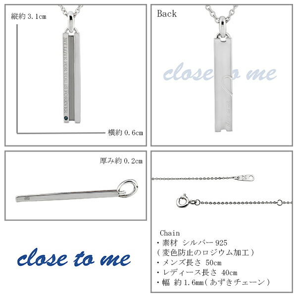 close to me ペアネックレス ペア ネックレス ペンダント ブルーダイヤモンド スティック シルバーネックレス シルバー シンプル 2本セット 銀