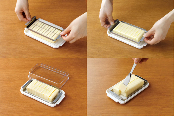 | フタ・・・AS樹脂 本体・・・ポリプロピレン バターカッター、バターナイフ・・・ステンレス鋼 |