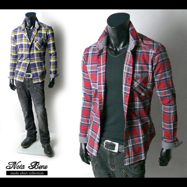 【紳士メンズ】【Nota Bene】カジュアルチェック柄長袖ビエラシャツ