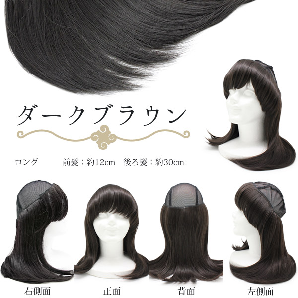 | サイズ | 髪の長さ:前髪 約12cm、後ろ髪 約30cm インナーキャップ:約51cm〜約61cm(ネット自体に伸縮性あり) |