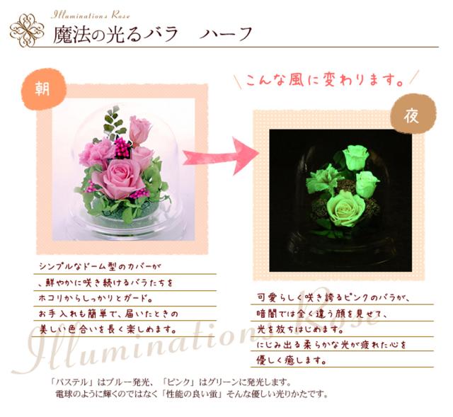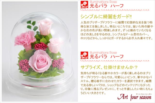 プリザーブドフラワー 光るバラ プレゼント ギフト 誕生日プレゼント 【ハーフ】 還暦祝い 結婚祝 結婚記念日 退職祝 クリスマス 送料無料 母の日 ホワイトデー