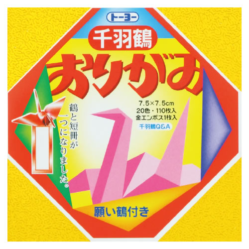 内容/20色110枚、金エンボス1枚、願い鶴用折り紙1枚、千羽鶴の折り方・つなげ方、願い鶴の折り方