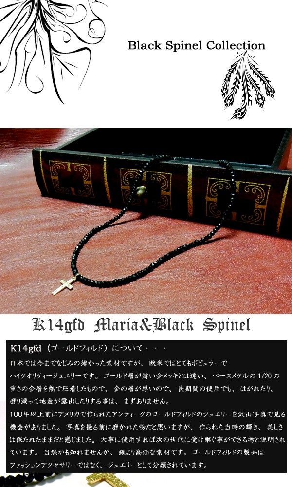 即納 BOX付き”K14gfdクロスブラックスピネルネックレス/ゴールドフィルド/シルバー925ネックレス/雑誌/