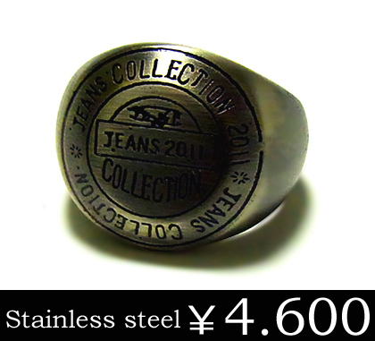 即納 送料無料 アンティークゴールド カレッジ風ステンレスリング/ステンレスアクセサリー/ブラック/ギフト/