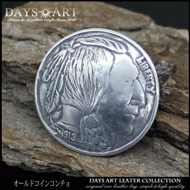 インディアンのデザインを施したオールドコインタイプのメタルコンチョです。