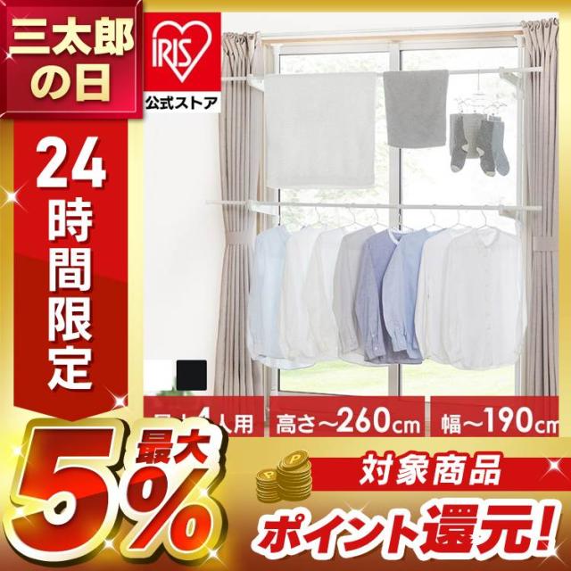 室内物干し つっぱり 洗濯物干し 室内 省スペース 幅110〜190cm 高さ190〜260cm 伸縮自在 2段 大容量 簡単設置 部屋干し 室内干し 窓 窓際 窓枠物干し 花粉 梅雨 物干し 突っ張り 突っ張り物干し まとめ洗い 新生活 アイリスオーヤマ MW-260NR *