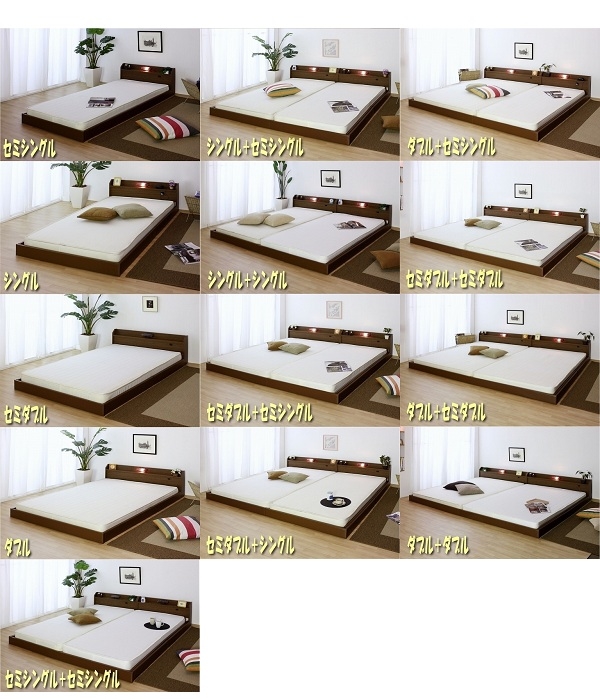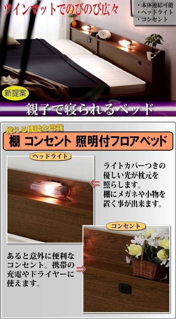268-31-LWK280 友澤木工 棚 照明 コンセント付フロアベッド ワイドキング280(ダブル+ダブル)(ロング) ブラウン