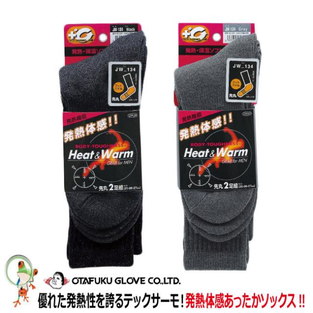 防寒発熱靴下 おたふく インナー BTサーモフットパイル先丸2P / JW-134 ヒートテック ブラック グレー ソックス