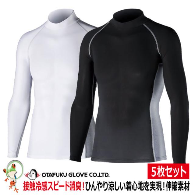冷感インナー 冷感 インナー おたふく 冷感・消臭パワーストレッチ 長袖ハイネックシャツ / JW-625 ホワイト ブラック【お得5枚セットプレゼント付】