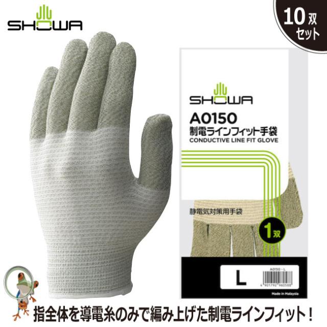 帯電防止手袋 ショーワ 制電ラインフィット手袋#A0150 制電手袋 10双入り