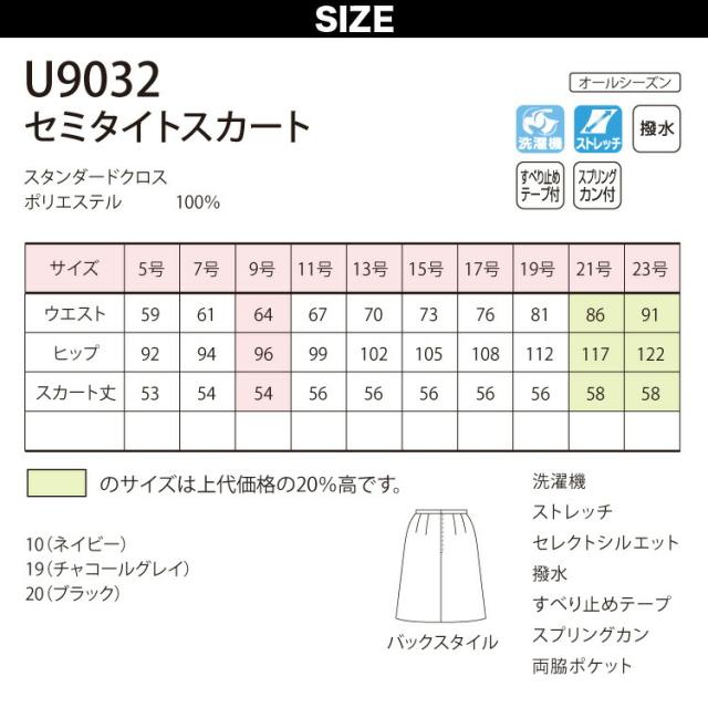 UNILADY セミタイトスカート 5号〜19号 U9032 ネイビー チャコールグレイ ブラック 無地 オールシーズン 制服 事務服 ユニレディ ヤギコーポレーション