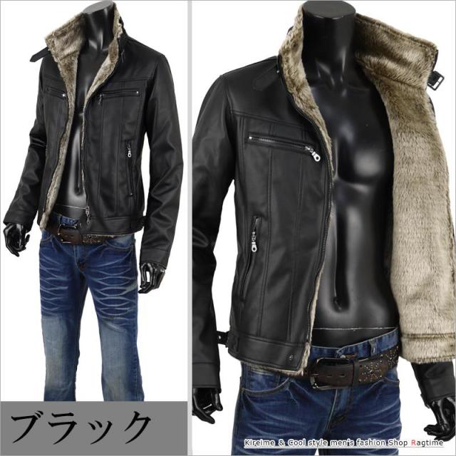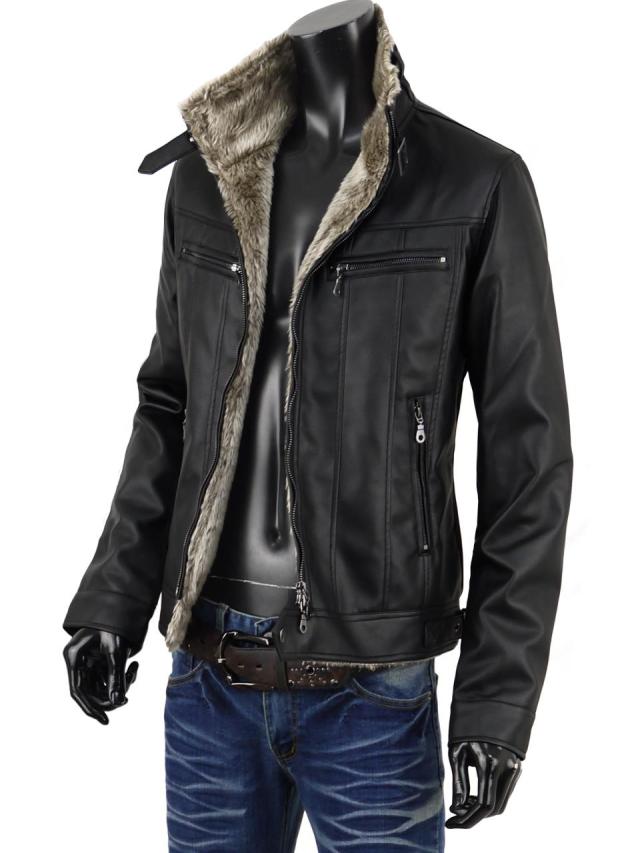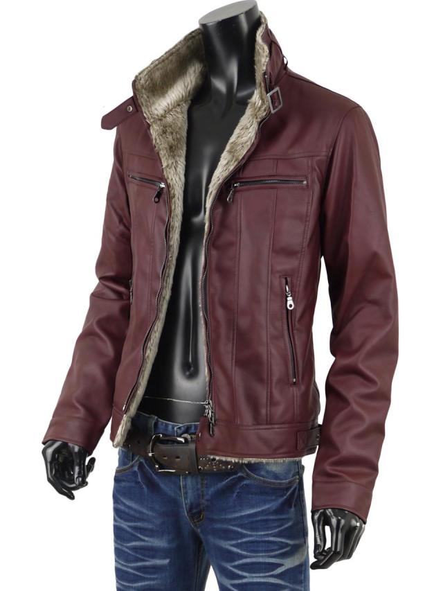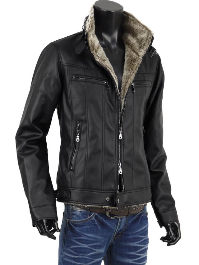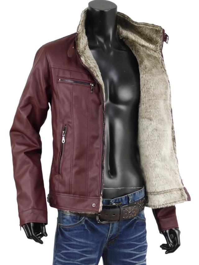 ライダースジャケット メンズ レザージャケット 裏ボア ファー ブルゾン 革ジャン 冬アウター VK-O137001